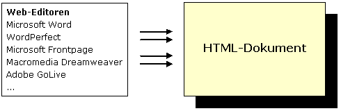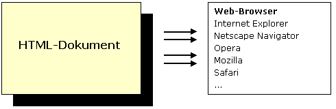Die Grundidee ist, dass ein HTML-Dokument (= Webseite) in jeder Anwendung darstellbar ist, welche HTML versteht (= Webbrowser). Ein HTML-Dokument enthält neben dem eigentlichen Text zusätzlich versteckte HTML-Befehle, welche die Formatierung und Strukturierung des Dokuments festlegen. Diese Befehle werden vom jeweils benutzten Browser umgesetzt.